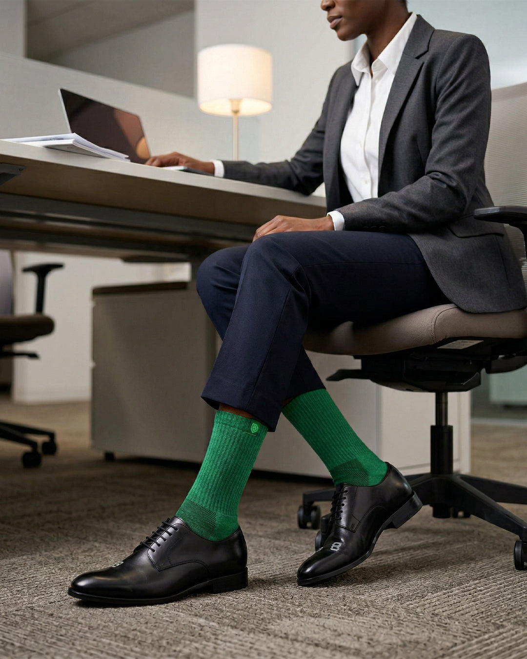 The 200-needle compression knit wraps the foot with a gentle, low-pressure hold — supportive without squeezing, structured without stiffness. A terry-cushioned sole absorbs impact quietly. Midsole elastic keeps everything in place, whether you're at your desk or on your feet. Anatomical R/L shaping means each foot gets exactly what it needs — no more, no less.