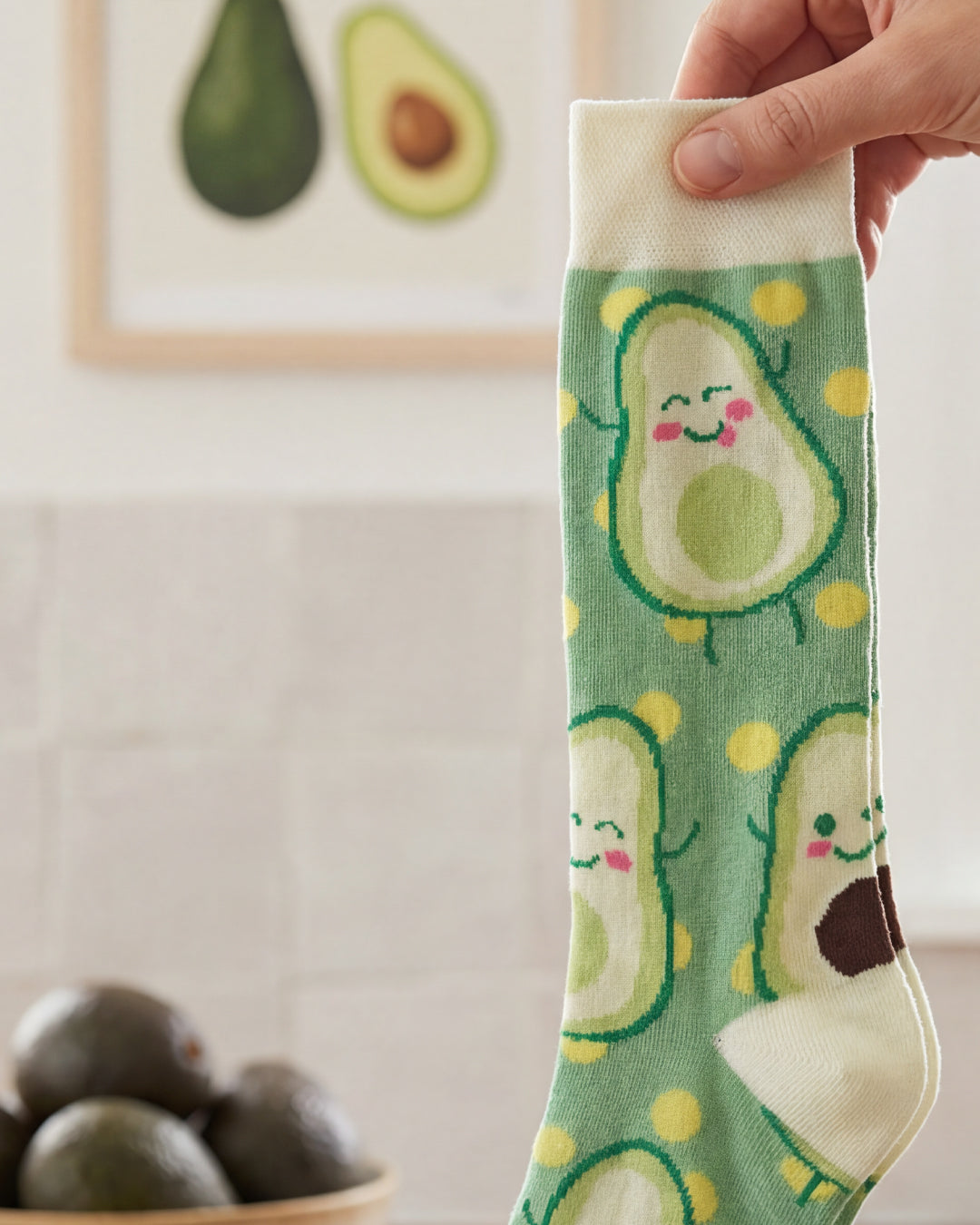 Happy steps! Designed with cute avocado patterns and pastel green tones, these socks offer an energetic, fun, and positive style. They are the ideal piece for those who want to add joy to their everyday outfits and love fun patterns.