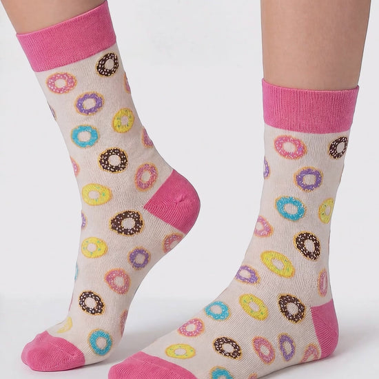 Ready for a sweet style touch? Our donut-patterned socks add a cheerful vibe to your everyday outfits with their fun design, soft texture, and vibrant colors. Thanks to their colorful donut patterns, these socks transform even ordinary days into a sweet style.