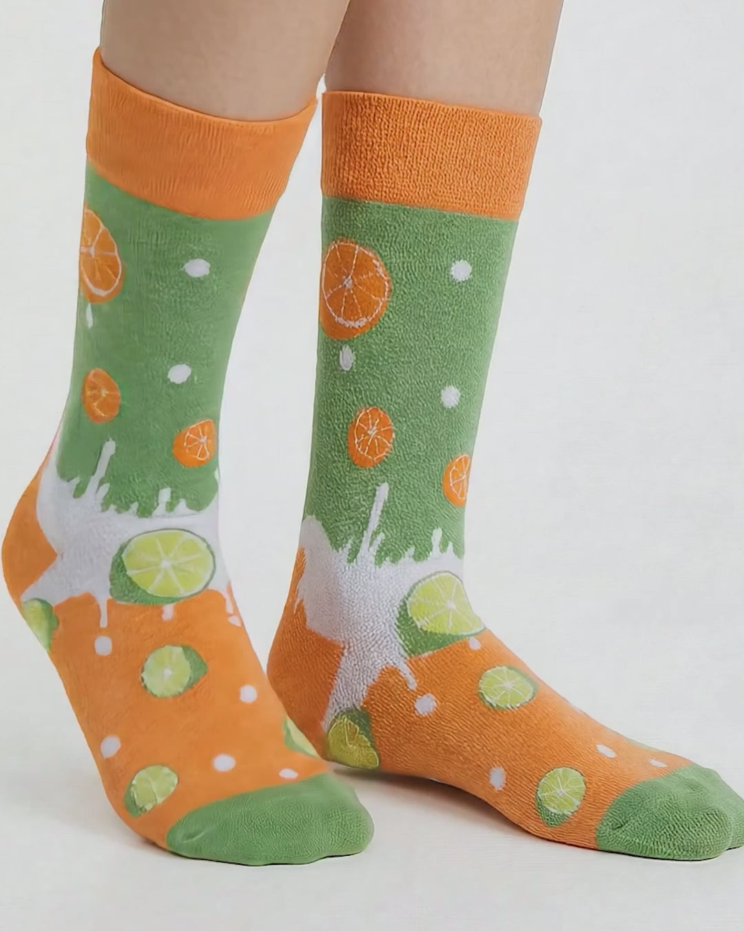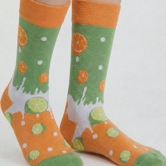 Add a fresh touch to your day! Our citrus-themed socks feature orange and lime patterns for an energetic, vibrant, and fresh style. The harmonious contrast of orange and green adds summer energy and a positive vibe to your steps.